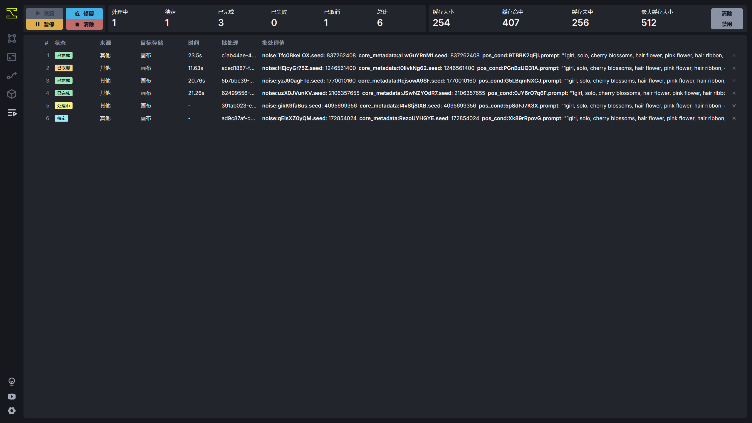 在统一画布的左侧为图片生成参数的调整,如提示词、模型、采样器等。